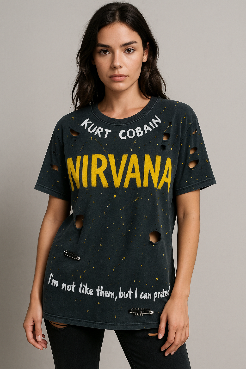 Tricou “NIRVANA / Kurt Cobain” – Vintage Washed, Hand-Painted & Distressed